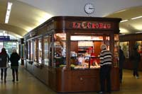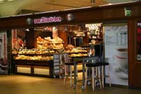 DB, Croissants Dammtor, Bäcker, Feinkost, Zeitschriften, Chips und Bier, Blumenladen, Geldautomat und Fahrkarten.